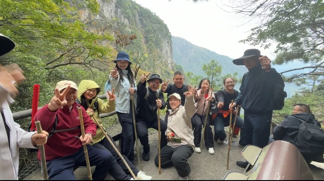 行至半山腰時(shí),天空突然飄起細(xì)雨,氣溫急劇下降,給登山增加了不小的難度。但這并未澆滅大家的熱情,伙伴們迅速拿出提前準(zhǔn)備的雨衣披上,有的主動(dòng)攙扶著已經(jīng)精疲力盡的同事,小心翼翼地在濕滑的石階上穩(wěn)步前行。山路愈發(fā)難走,卻讓團(tuán)隊(duì)的凝聚力愈發(fā)凸顯。大家心中只有一個(gè)共同目標(biāo)——向著山頂,繼續(xù)前進(jìn)!